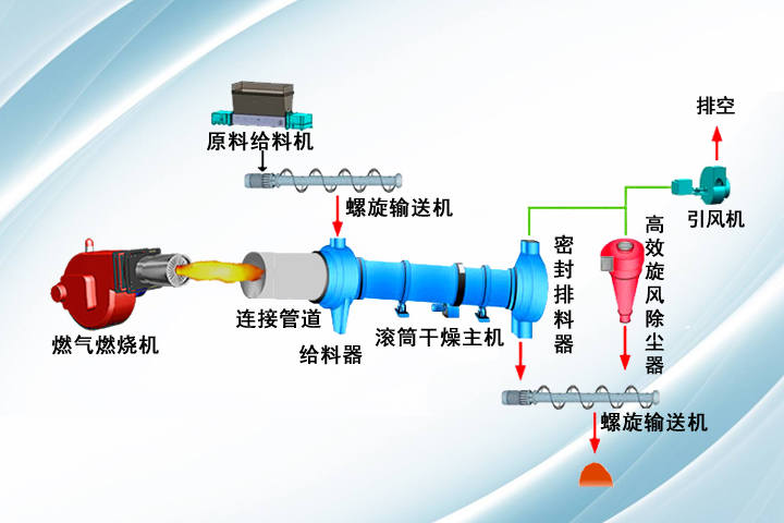 雞糞烘干機(jī)采用單段或雙段打散滾筒烘干機(jī)技術(shù),一次性將高達(dá)70-80%含水量的禽畜糞便脫水烘干至13%以下